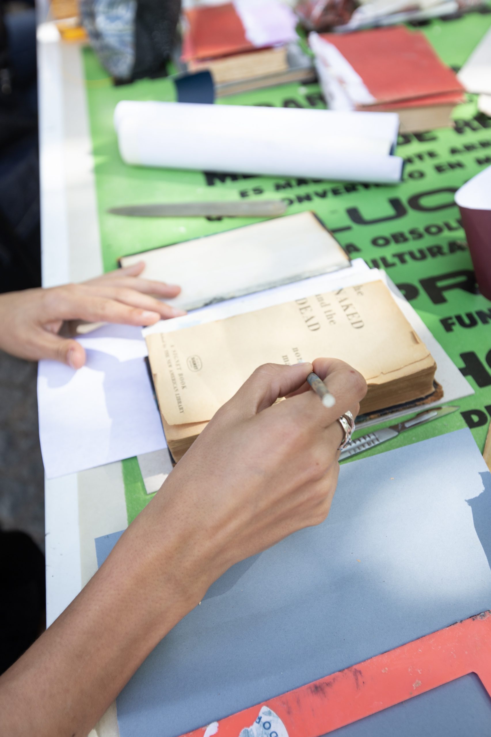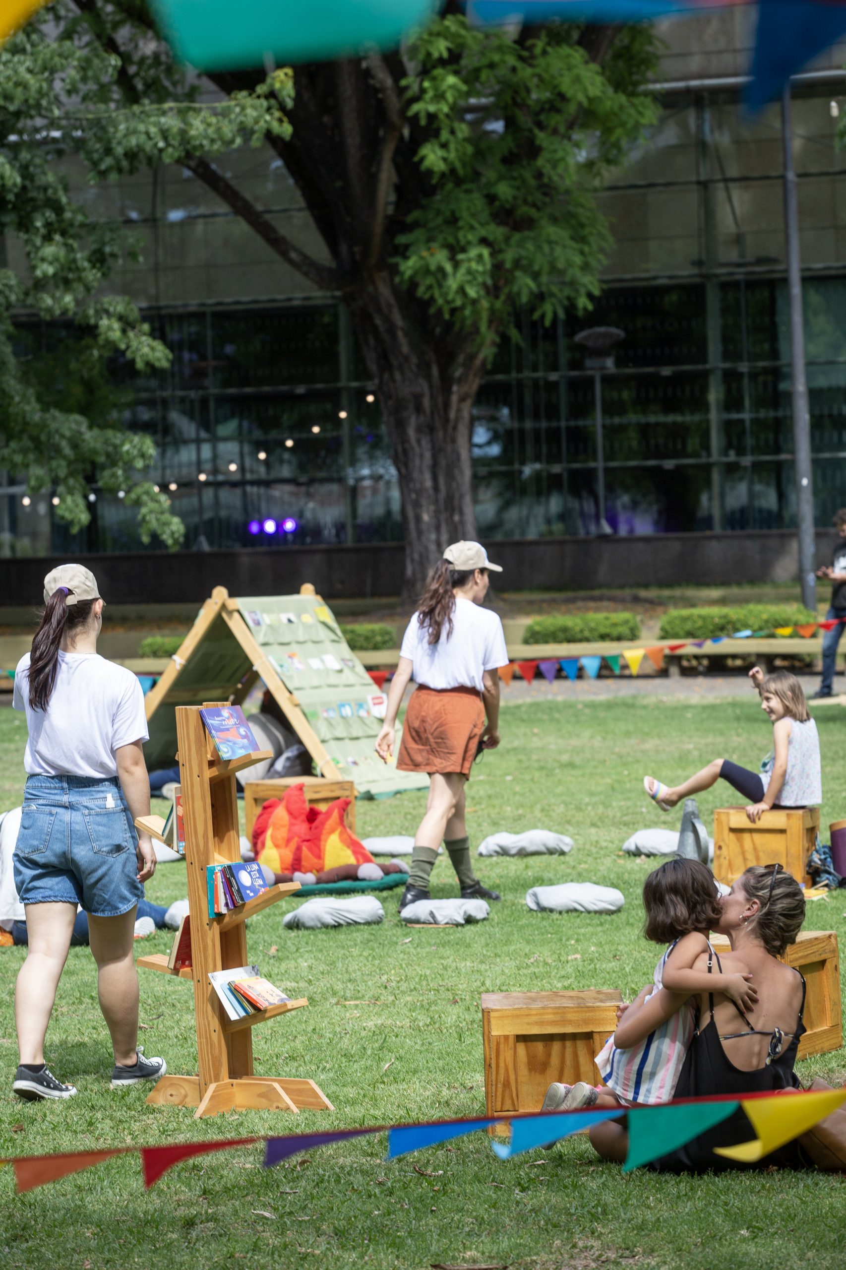 El sábado fue el día dedicado al encuentro presencial. Durante toda la tarde Malba recibió a cientos de lectoras y lectores de todas las edades tanto en el museo como en la Plaza Perú para disfrutar de talleres, charlas, lecturas, conciertos y feria de libros. A las 15:00 se inauguró en la plaza el campamento literario, una actividad para público infantil que reprodujo el típico ritual con carpas, árboles, un fogón artificial y 300 libros de diferentes temas y niveles, invitando a los más chicos a la lectura a través de juegos, canciones y sorteos. Allí también se ubicó la feria de libros, de la que participaron Malba Tienda y Notanpüan con una oferta diversa de títulos, y funcionó durante todo el día el escritorio de reparación de libros a cargo del Club de Reparadores. Más tarde se presentó en el Auditorio Malba el libro La voz de Olga Orozco de Jorge Monteleone, seguido por la lectura de una selección de poemas de la autora homenajeada a cargo de María Negroni, Alicia Genovese, Teresa Arijón, Paula Jiménez España y Ariana Daniele. Al mismo tiempo, en la biblioteca se llevó a cabo la materialización de un libro hecho en comunidad a cargo de Imprenta Rescate y en la sala pedagógica se brindó un taller de poesía ultraísta para chicos y chicas en el marco de la exposición Rafael Barradas. Hombre flecha. Hacia el final de la tarde, la revista Aguinaldo presentó una serie de lecturas en torno al tema de su última edición, la amistad, a cargo de Cecilia Pavón, Félix Bruzzone, Silvina Giaganti, Liliana Heker, Lucas Oarte y Powerpaola. La noche concluyó con un brindis y un concierto de Flor del Valle en el Auditorio.