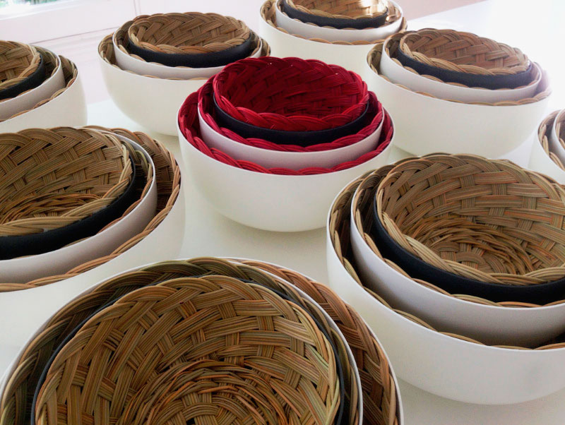 Una técnica tradicionalmente utilizada en Catamarca para elaborar pequeñas piezas de cestería, ahora da cuerpo a objetos de una nueva escala, que además se insertan en la contemporaneidad con terminaciones que solo son posibles en la gran ciudad.