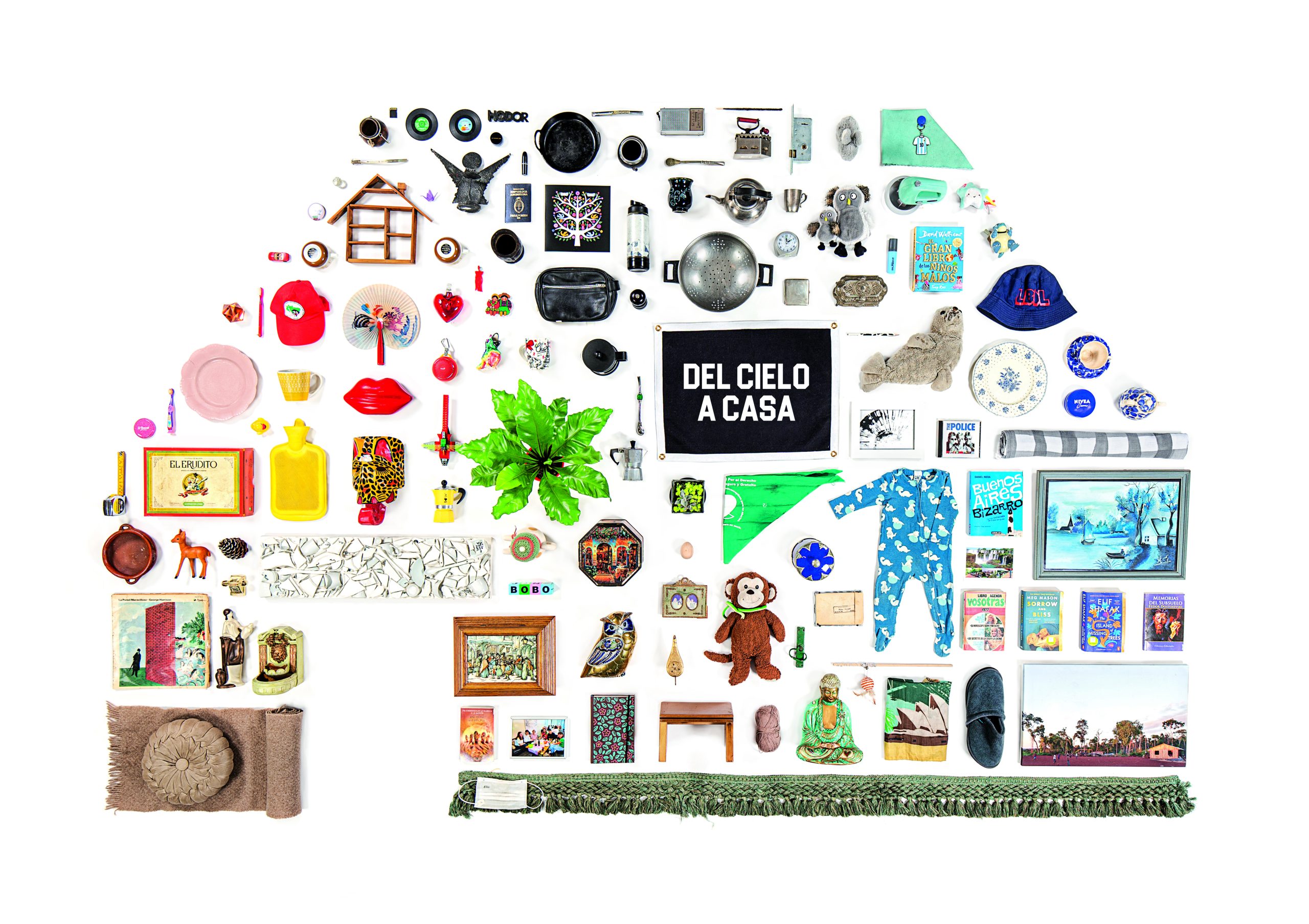 En el marco de la exposición Del cielo a casa, —Paula forma parte del equipo curatorial— Malba invitó a personas de todas las edades a traer un objeto que simbolizara o representara su casa. Se acercaron casi 50 personas de todas las edades con objetos de todo tipo: juegos, cuadros, portarretratos, ropa, objetos de diseño, pantuflas y hasta una planta. Algunos participantes se animaron además a compartir el por qué de su elección.