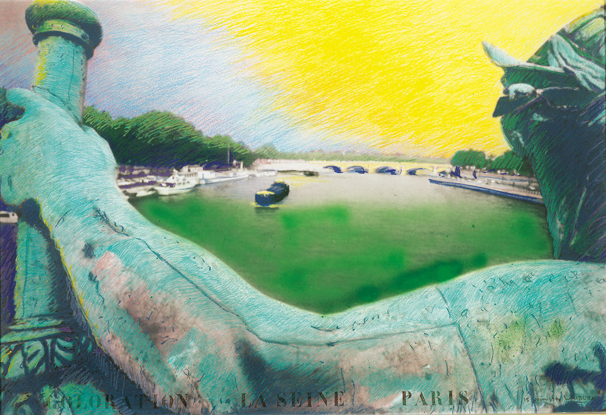 En la sala 2 de MALBA, dedicada a la colección permanente del museo, puede verse el cuadríptico Hidrocromía intercontinental (1970), que incluye los registros documentales de cuatro de esas intervenciones: en el Sena en París, el River East en Nueva York, el Río de la Plata en Buenos Aires y el Gran Canal en Venecia. Se trata de fotografías de toma directa, trabajadas luego al pastel por el artista.