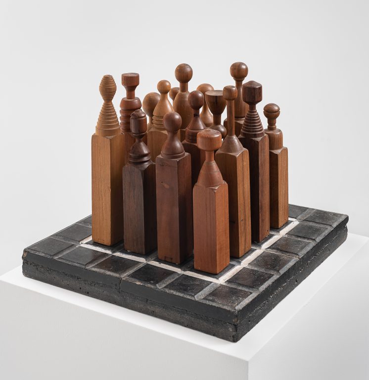 “Vigo retomó el juego de ajedrez para inscribirlo en una tradición obrera dado que las piezas son exclusivamente peones. Eliminó las categorías entre las fichas y la posibilidad de que sean ‘comidas’ por las de más jerarquía. Además, en términos materiales el artista trabaja con elementos ‘pobres’, estableciendo así una continuación temática: el tablero es una baldosa, las demarcaciones están realizadas con tiza y las piezas son elementos de tornería”, explica Marita García, Curadora en Jefe del Malba.