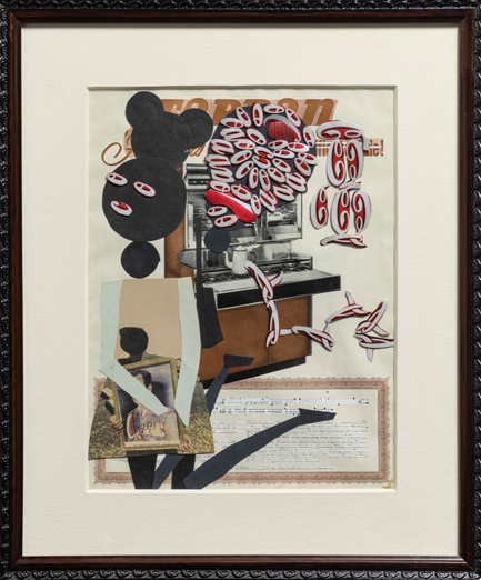 Collage sobre páginas de revistas, papel, birome, aluminio de latas de Coca Cola y corrector líquido.