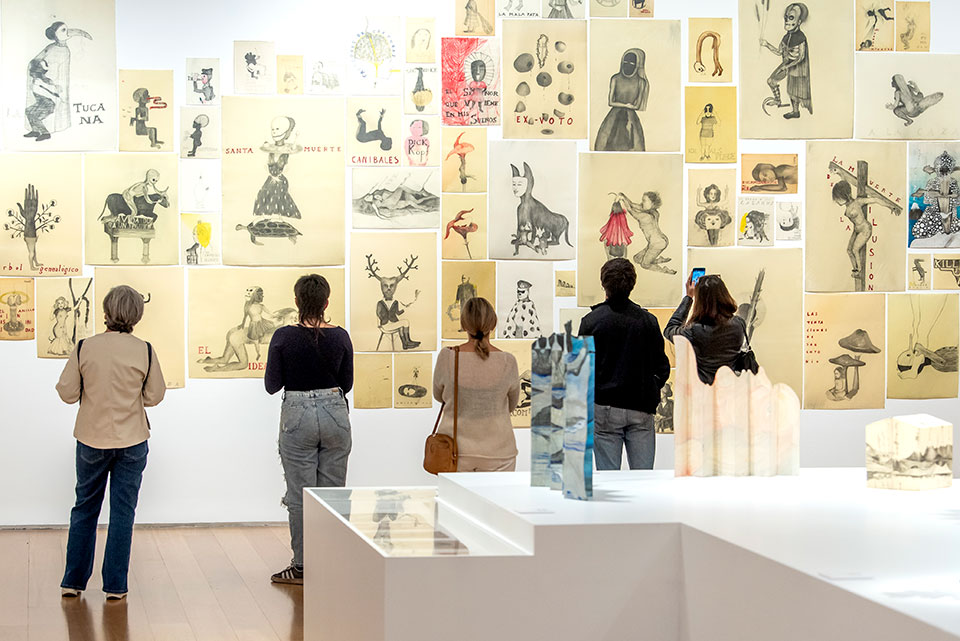 En el marco de la exposición Los volcanes despiertos de la artista chilena Sandra Vásquez de la Horra, realizaremos una nueva edición del ciclo de talleres «Modos de hacer», enfocado en las técnicas de producción de la artista. ¿Qué procedimientos y materiales utiliza? ¿Cómo aborda Vásquez de la Horra la narrativa visual a través de sus obras? Comenzaremos con un recorrido por las salas de la exposición, a través de una selección de piezas de la artista, para explorar las características de su obra: sus principales temas de interés y múltiples referencias a diferentes culturas, y sus procesos de producción, medios y materialidades donde el protagonismo del dibujo, el papel y su particular técnica con cera de abejas dan una impronta única a su obra. Posteriormente, en el espacio de taller, experimentaremos de modo sensible con los materiales y técnicas fundamentales de su proceso creativo, para generar modos de hacer propios y acordes al desarrollo de obras con una impronta personal.