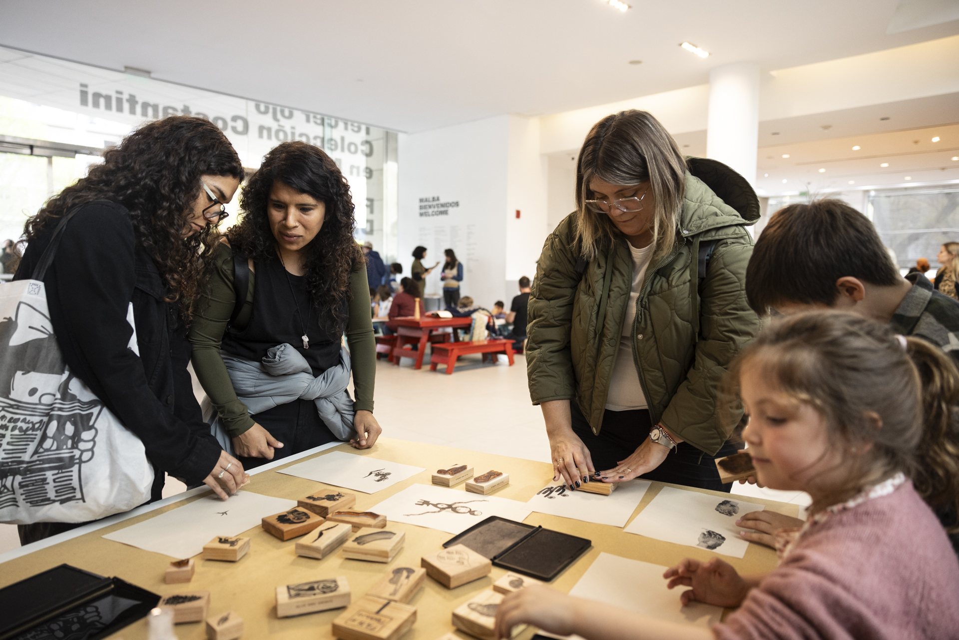 Esta mesa estará dedicada a la diversidad del territorio de América Latina y sus protagonistas, a través de imágenes de fragmentos de obras que pertenecen a la Colección que inspiraron los sellos realizados por Taller de Ramos Generales. Estos sellos icónicos servirán para estampar sobre papel o tela, realizando composiciones individuales o piezas más grandes.