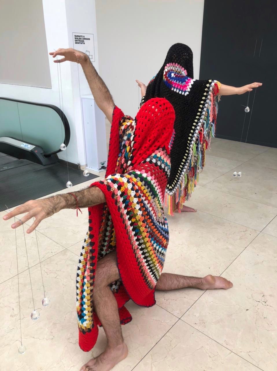 Acompañando el cierre de la exposición Aó. Episodios textiles de las artes visuales en el Paraguay, el artista Beto Antonio Villa presentará la performance Lamento II (díptico), que forma parte de la serie «La espada y la piedra». «Dos performers cubiertxs con mantas tejidas a mano realizan posturas que rasan el suelo. Las cobijas son documentos, colchas que me acompañaron en mi vida, tejidas por mi tía, mi abuela, mi madre. Me remito a repararlas y acondicionarlas para la acción. Lxs performers sostienen péndulos fabricados con prismas facetados, usados comúnmente en las casas para descomponer los rayos del sol y expandir la energía al espacio. Reutilizo elementos de mi casa de crianza para generar un espacio de contemplación y sacralidad muy sencillo, a partir de premisas compositivas que nos inventamos de mirar imágenes en internet, de copiar gestos», destaca el artista.