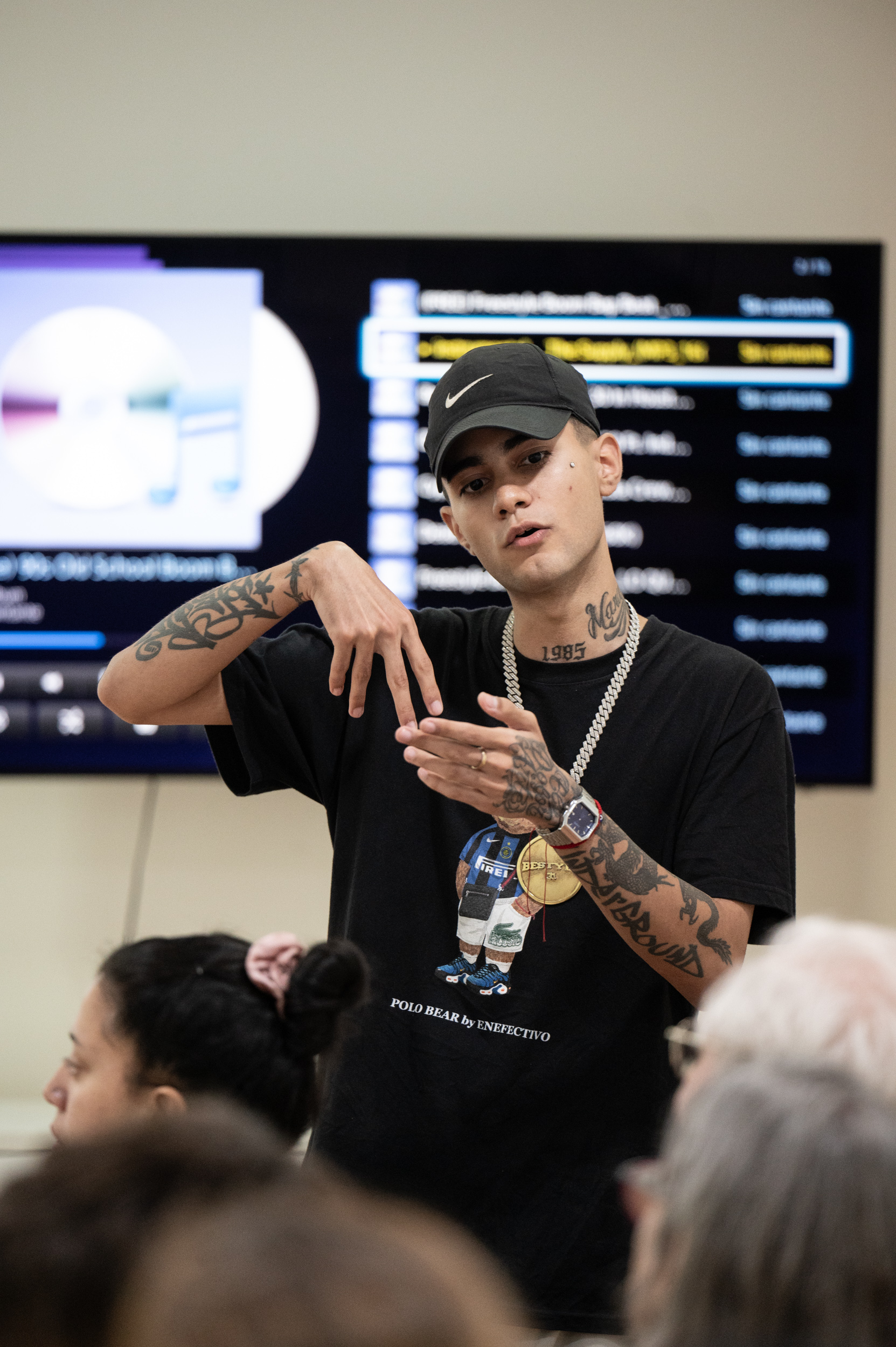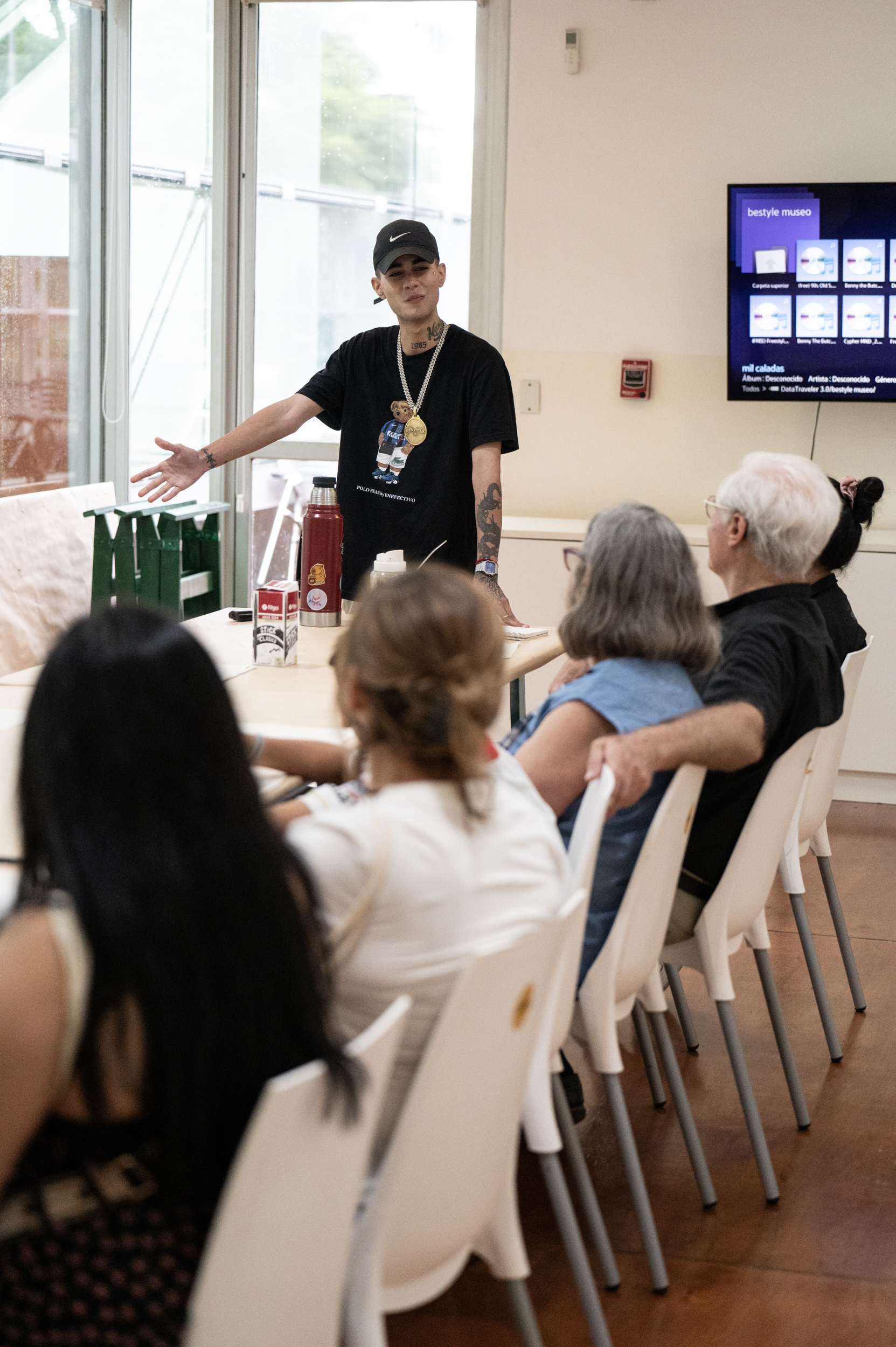 El retrato de lo urbano y la cultura hip hop presentes en la obra de Cao Fei dialogan directamente con expresiones culturales que vemos, escuchamos y habitamos todos los días en los barrios de Buenos Aires. Una de sus manifestaciones más contemporáneas es el freestyle, que agrupa a jóvenes en plazas y esquinas trenzados en batallas poéticas. En el marco de Maraña –programa de diálogos, enredos e intercambio de experiencias y saberes entre el Malba y el Barrio Mugica– se realizará un taller de rap a cargo de Bestyle, joven artista vecino del barrio, que nos compartirá lineamientos de composición, ritmos, y letras para componer una canción de manera colectiva. Para finalizar, te invitaremos a compartir el resultado final en las salas del museo, buscando tu propio flow.