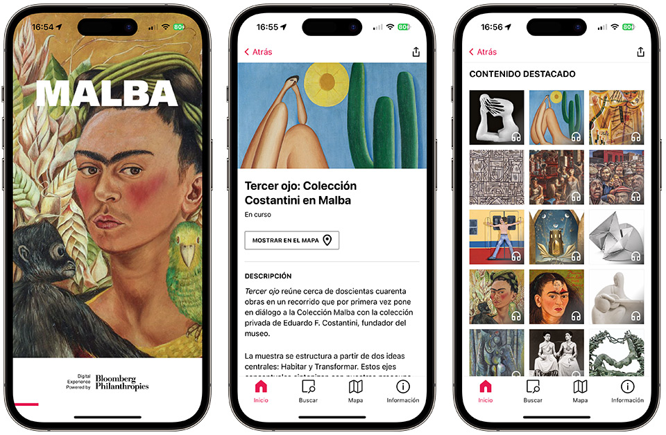 Available on any mobile device through Google Play or the App Store, the guide includes content related to the Collection Malba and the program of temporary exhibitions of the museum. Collects texts, images, maps, illustrative, audio and videos that enhance the user experience before, during, and after the visit to the museum. All contents are available in Spanish and English and is updated on a monthly basis with new materials.