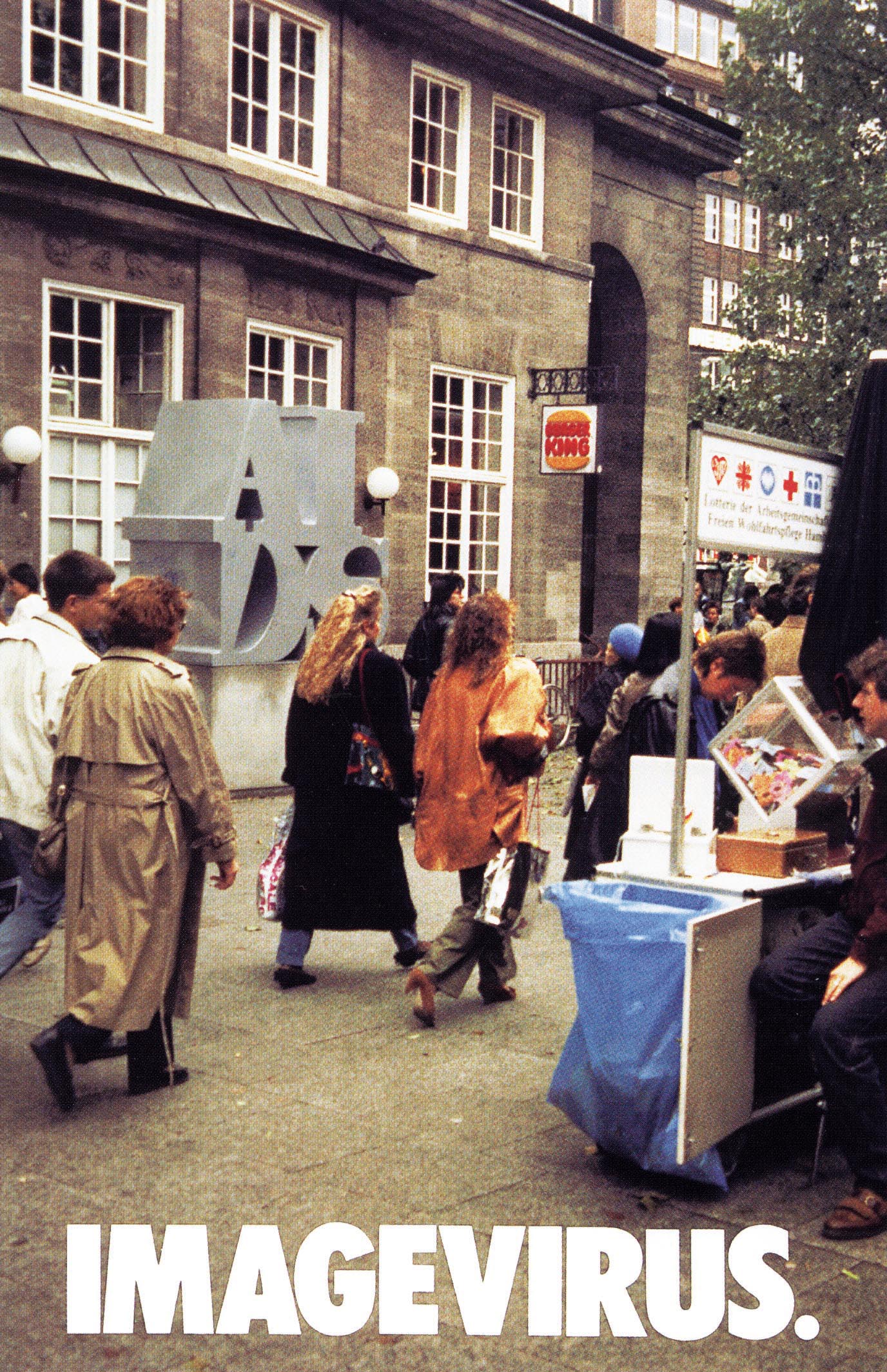 En esta etapa final, la exposición del trabajo de General Idea es mayor en formatos, lugares y tiempos. Un ejemplo es el de los tapices y carteles de AIDS pegados por toda la ciudad y en diferentes formatos en muros, colectivos y el subte; además de remeras, bolsas, entre otros objetos. El virus en forma “burroughsiana” toma todo, incluso el tiempo. Esa idea se recoge en la serie Imagevirus (1989-1991), un conjunto de cinco posters, que da cuenta de esta idea virulenta de la imagen y del proyecto. Una de las obras públicas con mayor difusión, y que toma el medio como modo en el mensaje es la proyección de AIDS (1993/1994), que se expuso en una gran pantalla de Times Square en Nueva York.