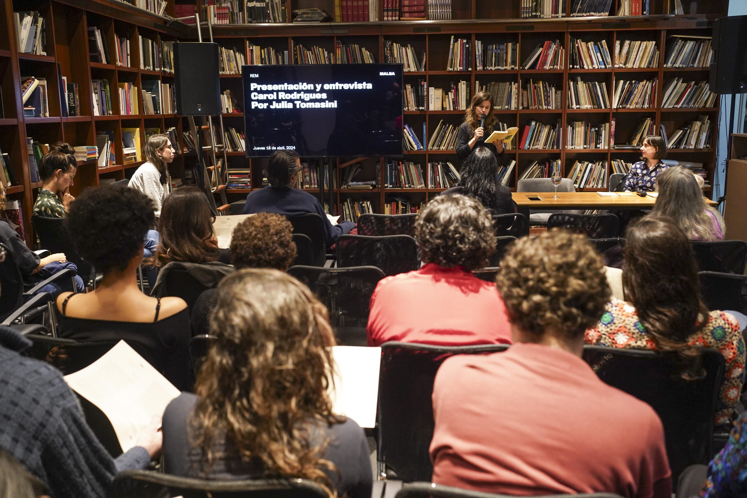 Buenos Aires 19 de abril de 2024 — Ayer tuvo lugar la primera actividad pública de Carol Rodrigues, la primera participante de la Residencia de Escritores de este año. Fue una entrevista con la traductora Julia Tomasini en la Biblioteca, que culminó con una ronda de preguntas y un brindis.