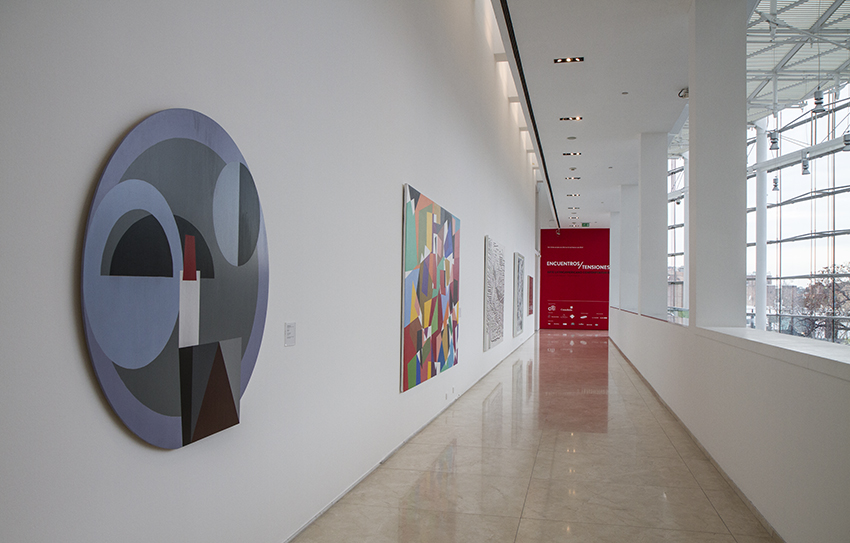 Encuentros / Tensiones está organizada en siete núcleos, reunidos por afinidades temáticas y formales. Se inicia con una serie de piezas centrales del conceptualismo latinoamericano de fines de los años 60 –que retoma la cronología de la puesta actual de la colección permanente- y llega hasta nuestros días.