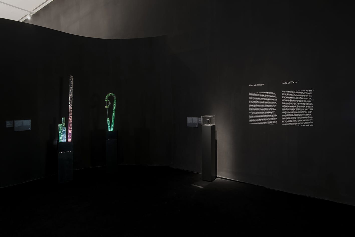 Curada por Mari Carmen Ramírez y María Amalia García, la muestra reúne más de 80 obras producidas entre 1950 y 1980, destacando en el perfil experimental de su obra –especialmente en sus esculturas de plástico, relieves cinéticos y gotas de agua, la mayoría con luces y activadas por aireadores y motores–, donde el movimiento es una constante fundamental. Presenta además, por primera vez en Buenos Aires, La ciudad hidroespacial, obra abierta y procesual cuyo conjunto más representativo, que será expuesto en Malba, forma parte de la colección del Museum of Fine Arts, Houston (MFAH) desde 2009. Esta instalación condensa años de búsquedas materiales y teóricas, y expresa los deseos de Kosice, quien, ya desde la década del 40, imaginaba a la humanidad asentada en algún lugar más allá de la Tierra.