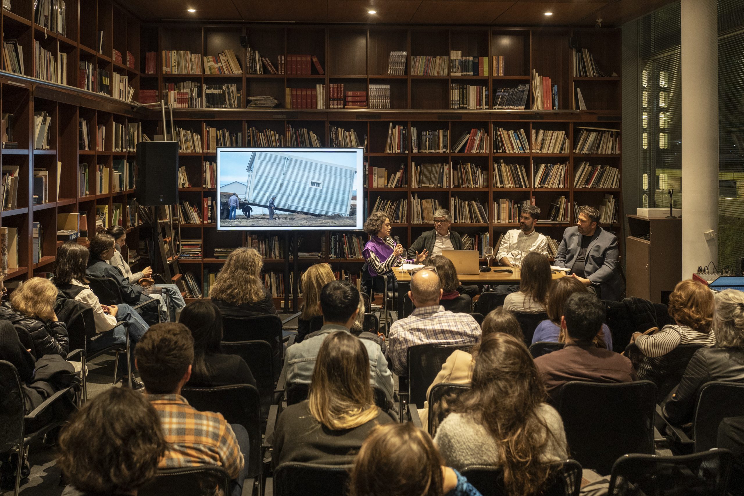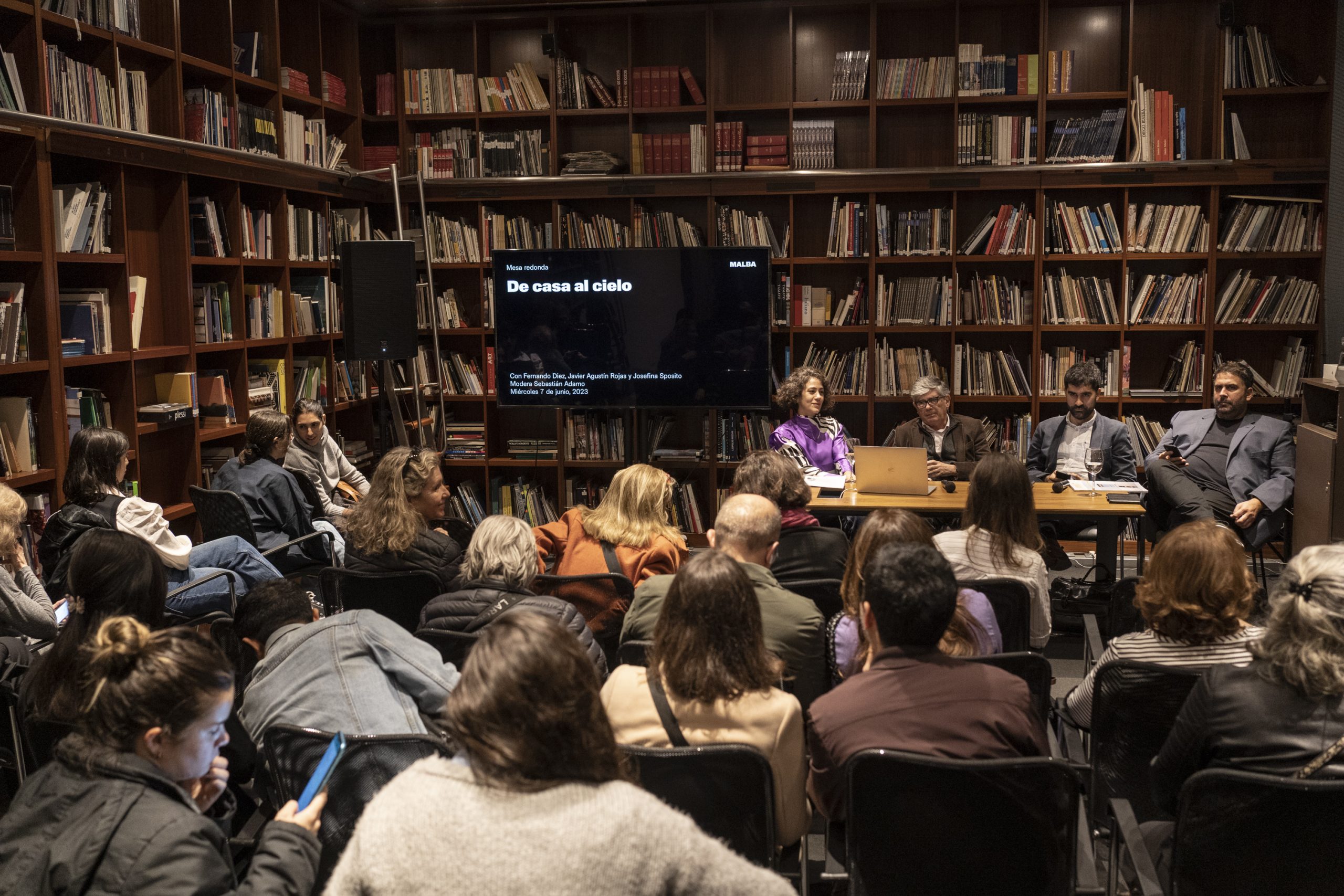 De casa al cielo se propone abrir la discusión a un panel de arquitectos para reflexionar en torno al rol de la vivienda en el desarrollo de nuestra cultura local. Una conversación donde «la casa» -entendida esta como laboratorio donde ensayar nuevas formas de conocimiento- estimula la aparición de nuevas formas de habitar y de relacionarnos con las cosas. Se intentará impulsar la aparición de una mirada específica sobre la genealogía del espacio doméstico local y así poder construir un posible camino alternativo al que se presenta en la muestra. Yendo esta vez de la casa a las cosas.