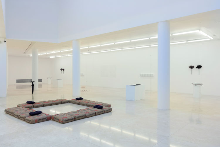 Tras un pasaje estrecho delimitado por las paredes de la librería y las escaleras mecánicas se encuentra el subsuelo del museo. Lugar estanco, el sótano se asume como tal al albergar herramientas de limpieza, de construcción y de almacenamiento. Esta puesta en escena de cosas con funcionalidades alteradas genera un ecosistema semejante al de un sueño inducido que combina y permuta las reglas de juego. Al borde del uso, los objetos permanecen en un tiempo sin trabajo, en un no-hacer sosegado. Formas lentas que diseminadas en el espacio se asemejan a un set de filmación abandonado tal como lo describe Sigfried Kracauer en el ensayo Calico-World: “Una pesadilla sobre objetos introducida a la fuerza en el reino de lo corpóreo… Todo de una artificialidad garantizada y al mismo tiempo fiel a la naturaleza.” [Siegfried Kracauer, El ornamento y la masa]