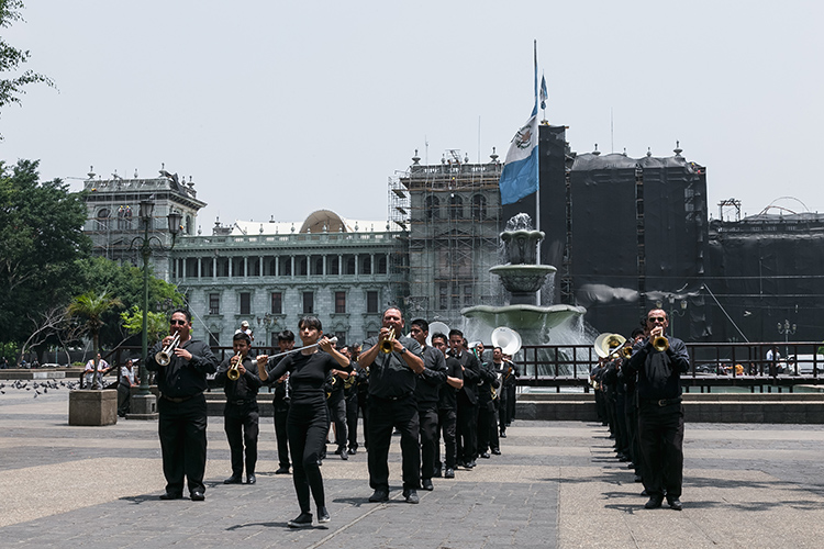 Sexta exposición del programa “La historia como rumor”, dedicada a la performance El gran retorno (2019), de la artista Regina José Galindo (Ciudad de Guatemala, 1974). El jueves 25 de abril, una banda de 40 músicos profesionales marchó hacia atrás en el centro de la capital de Guatemala mientras interpretaron marchas militares. La banda realizó un recorrido desde el Ministerio de la Gobernación al Palacio Nacional, dos lugares de un importante significado político.