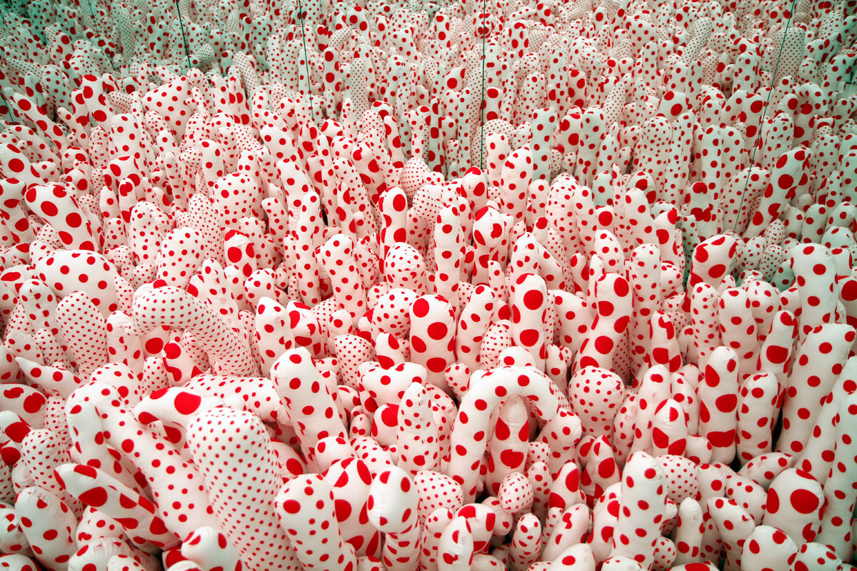 Nació en Matsumoto, Japón, en 1929. Después de un poético conjunto de obras semi-abstractas en papel que marcaron sus comienzos en los 40, Kusama creó la célebre serie Infinity Net (Red Infinita) a fines de los 50 y comienzos de los 60. Estas obras originalísimas se caracterizan por la repetición obsesiva de pequeños arcos de pintura que se acumulan en grandes superficies siguiendo patrones rítmicos. El traslado de Kusama a Nueva York en 1957, donde conoció a Donald Judd, Andy Warhol, Claes Oldenburg y Joseph Cornell, marcó un hito en su carrera artística. De la práctica pictórica pasó a las esculturas blandas conocidas como Accumulations (Acumulaciones) y luego a performances en vivo y happenings, claros exponentes de la cultura alternativa neoyorquina con los que ganó reconocimiento y notoriedad en la escena artística local.