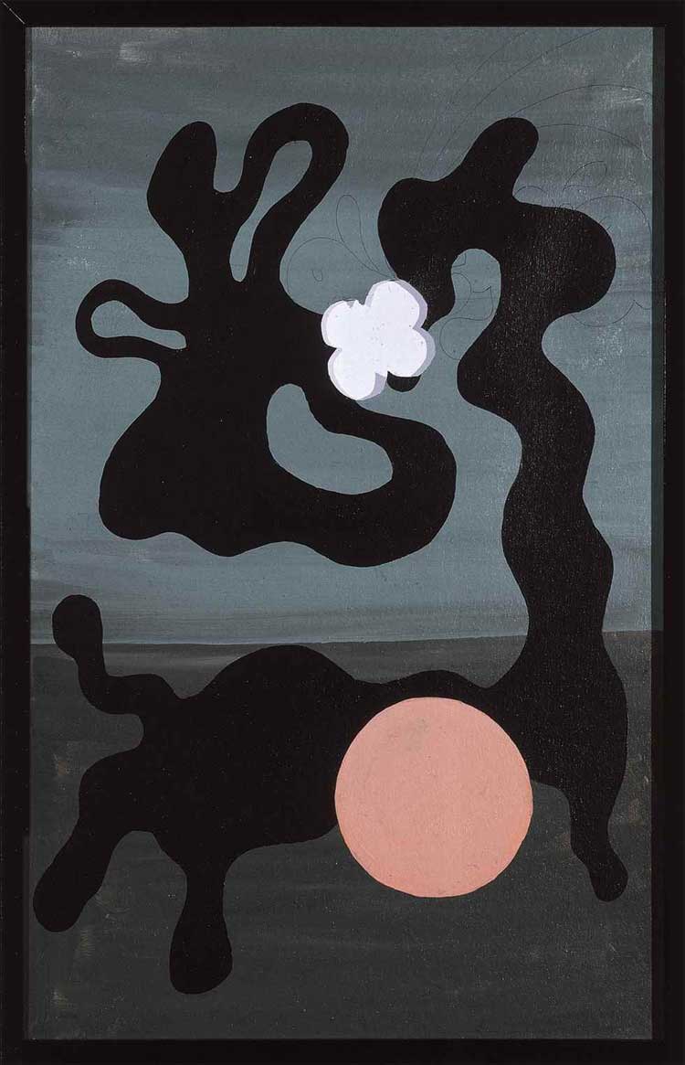 Volviendo a las dos piezas particulares que nos atañen, Abstracción abundante: Perro y Abstracción: Vos y yo juntos, cabe señalar que éstas proponen, desde sus propios títulos, como también el de la serie a la cual pertenecen, Formas negras parecidas a algo, explorar de manera lúdica la abstracción como lenguaje en el arte contemporáneo. En este aspecto, las obras se definen como abstracciones para problematizar, inmediatamente, la abstracción. En Abstracción abundante: Perro, la representación de un perro, animal doméstico y compañero afectivo por antonomasia, remite a un cuerpo cuya materialidad se estira, se deforma y se expande de manera lúdica sin perder totalmente su carácter figurativo. Ese sentido de expansión y multiplicación material es sugerido a la vez mediante una serie de siluetas en lápiz negro que, posicionadas en la sección superior de la pintura, presentan corporalidades potenciales e inacabadas. El oxímoron que define la conexión entre “abundancia” y “abstracción” en el título de la obra nos propone interrogar, así, cómo en esta pieza la abundancia material, simbólica y emocional resulta capaz de operar en consonancia con el esfuerzo de síntesis y economía de las formas que conlleva la abstracción.
