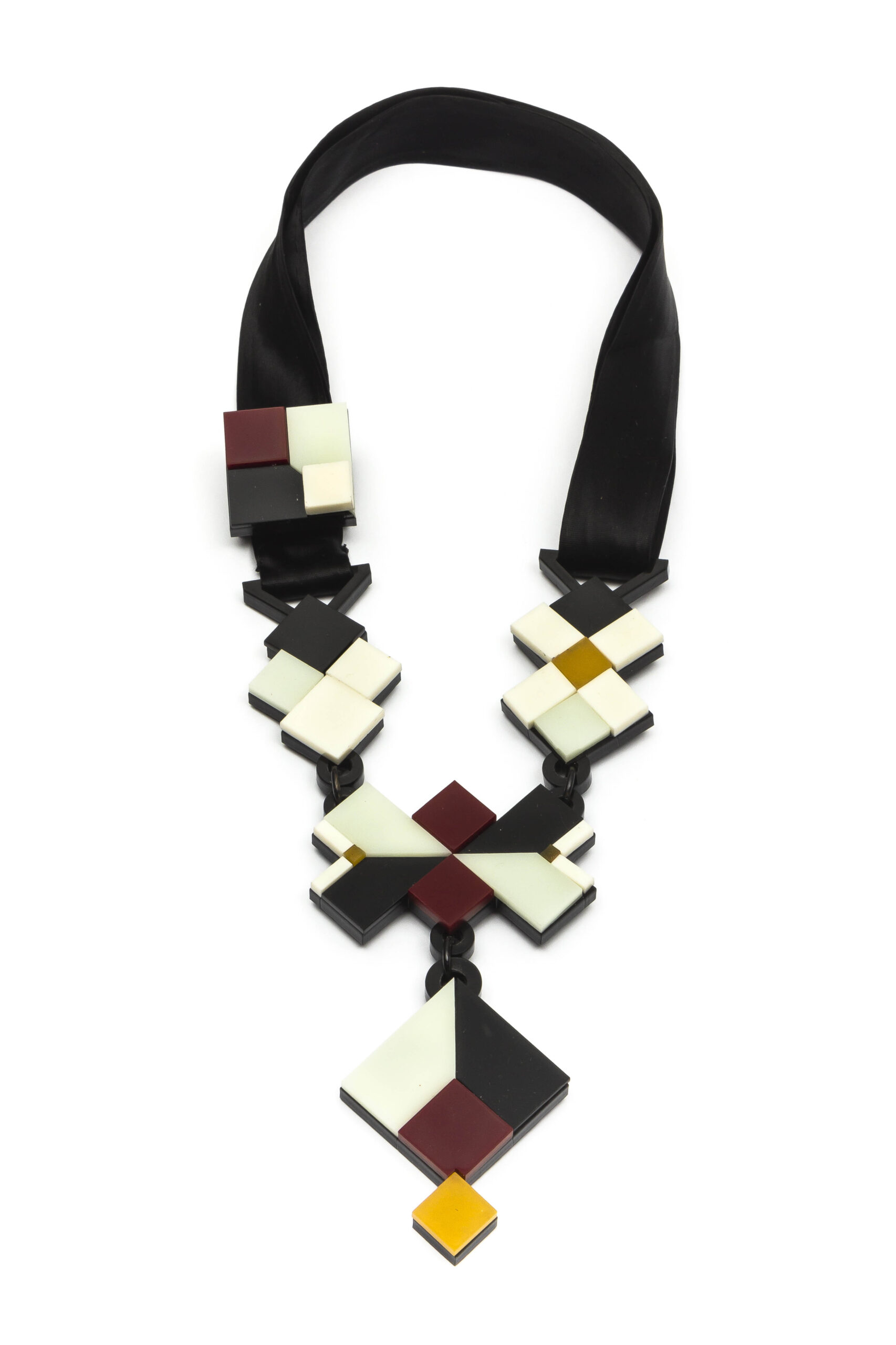 Buenos Aires 8 de agosto de 2017 — Como novedad del mes, Malba Tienda presenta Finn por la diseñadora argentina Paula Giecco. Usando como material casi exclusivo la resina acrílica, trabajada al detalle, como si se tratase de metales nobles, o piedras preciosas, Finn propone salir de los márgenes habituales de la joyería. Malba Tienda presenta anillos, aros, collares, carteras clutch y pulseras de las colecciones Ideal, Metrópolis y Pandora, inspiradas en los pisos y azulejos de confiterías porteñas, en formas geométricas del Art Déco y las líneas dinámicas del Futurismo.