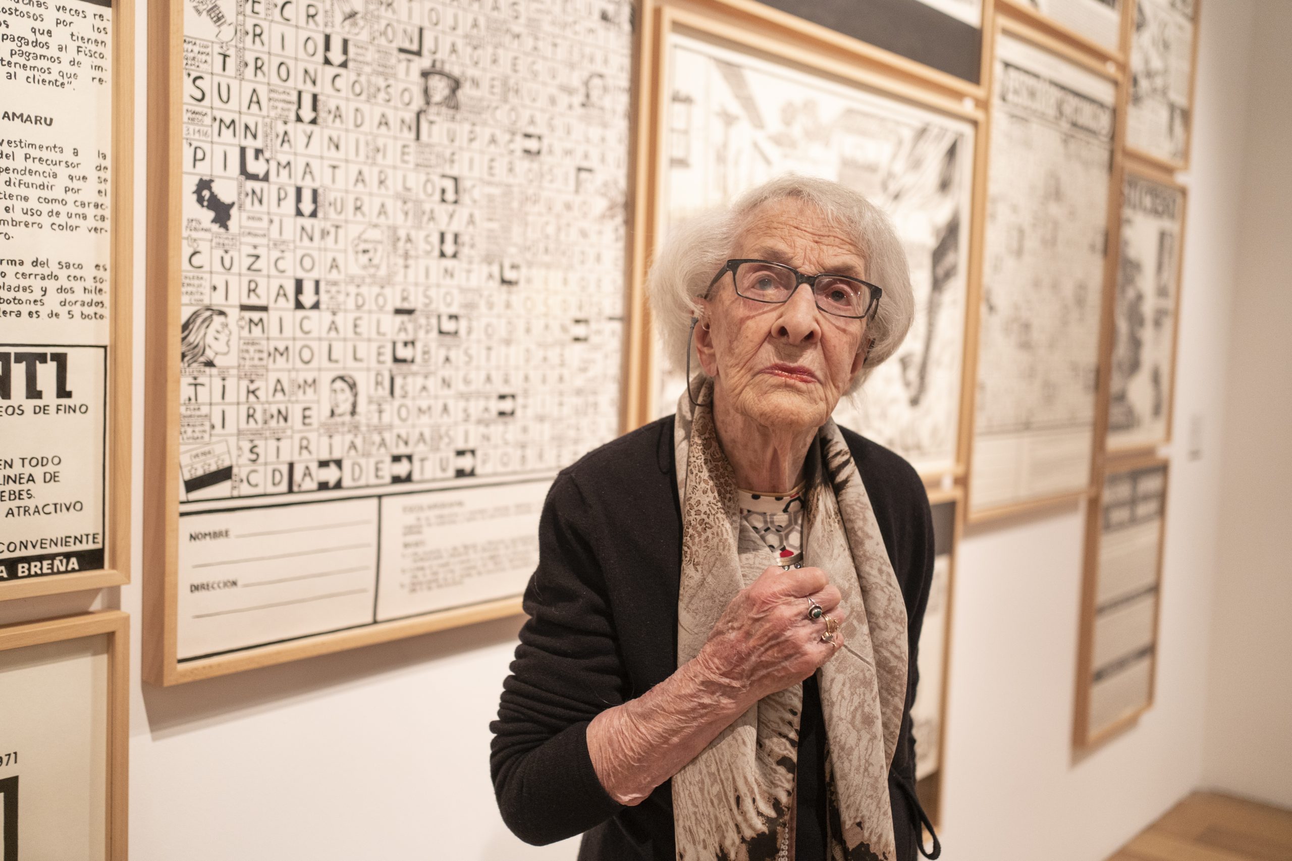 Buenos Aires 8 de mayo de 2023 — El miércoles 3 de mayo por la tarde, la gran poeta uruguaya visitó el museo. Antes de su entrevista pública con Jorge Monteleone, recorrió la exposición Tercer ojo y observó con especial atención algunas obras. Frente a la emblemática obra de su compatriota Torres García, comentó: “Mirá cuánto he vivido que a este lo conocí”.