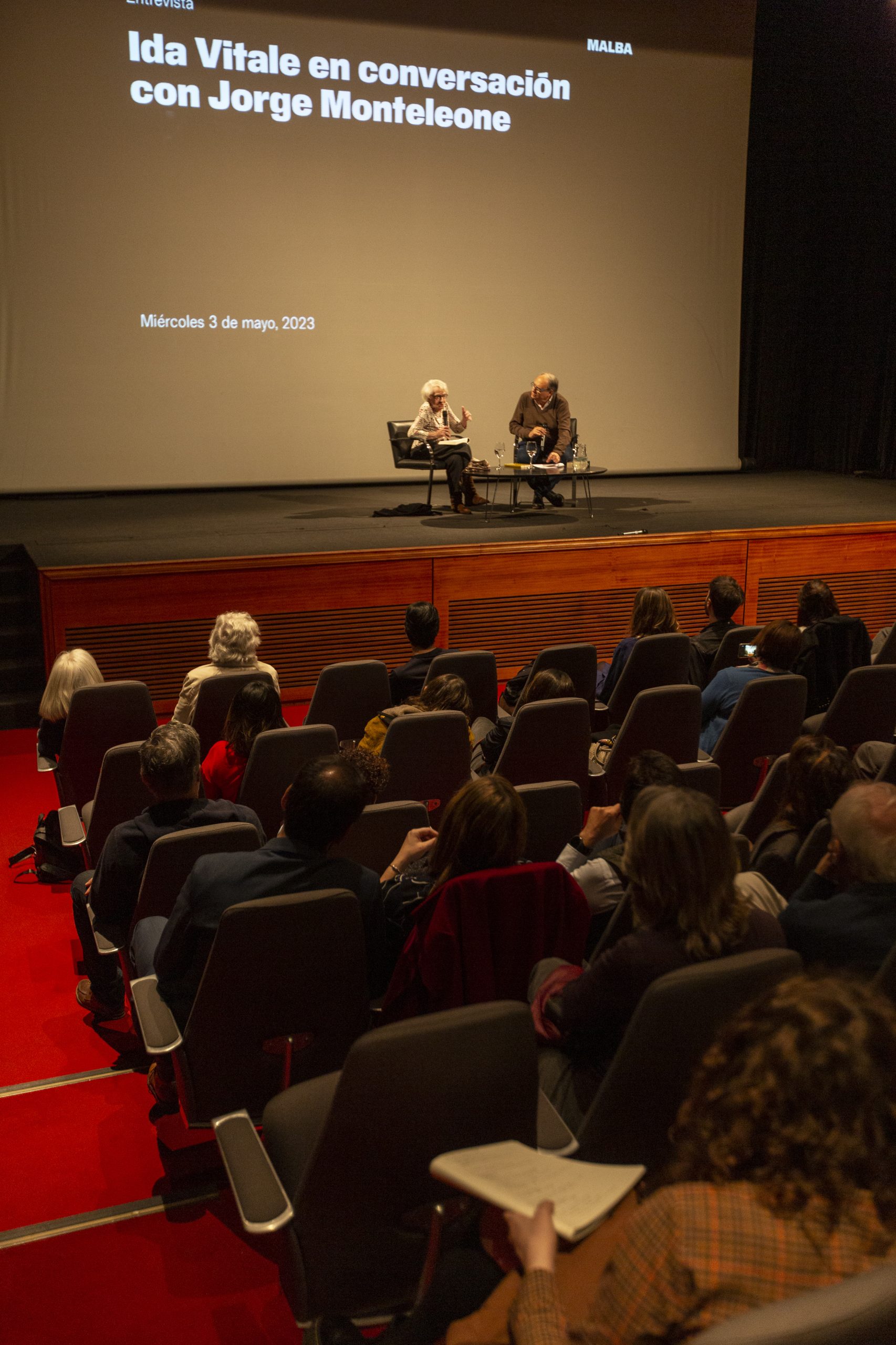 Durante la charla en el auditorio del museo con Jorge Monteleone conversó sobre su trayectoria, contó anécdotas de su infancia y se detuvo especialmente en la idea del azar, en la mirada de los niños y en cómo llegan a conocer el mundo.