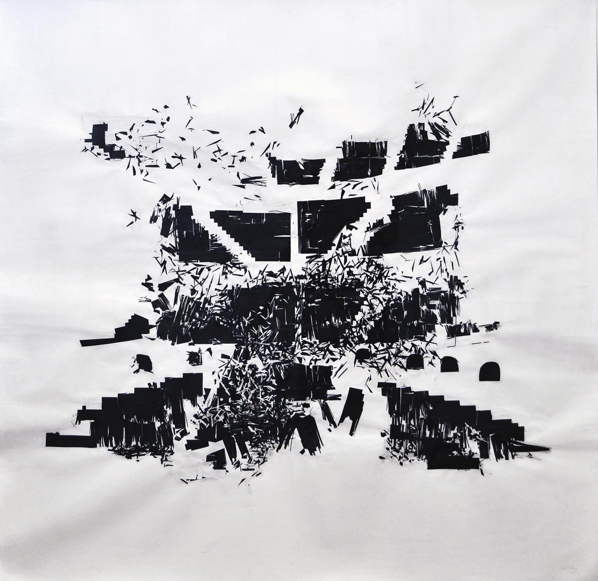Kuitca deambula errante en la oscuridad del laberinto de la pintura. De ahí sus palabras tan provocadoras como “Mi fe en la pintura es cero”.5 De ahí también que titule una de sus obras Yo, como la revolución permanente (1985); lance contra la tela una pelotita impregnada en carbonilla que fungía de lápiz o pincel (Planta con juego de pelota, 1994); pinte con los ojos vendados (Poema pedagógico II, 1996); se apropie de los garabatos que dibujaba de niño tanto como de las imágenes eruditas del cubismo y la pintura moderna (Kindertotenlieder, 1994; Desenlace, 2006); haga de sus diarios obras de arte (Diarios, 1994-en progreso); descomponga su abultado curriculum, tirándole un chorro de agua y así, corroído, lo transforme en un dibujo (Curriculum, 2002); aplique agua también sobre láminas de la enciclopedia para deshacer los valores del conocimiento (L’Encyclopédie, 1999-2002); se salga de la tela y pinte directamente ambientes (el mural en el Dining Room de la Dursdale Farm, 2013; Sin título, 2014). Todo esto, además de revisar los vínculos de la pintura con el teatro, la arquitectura, la música y la danza.