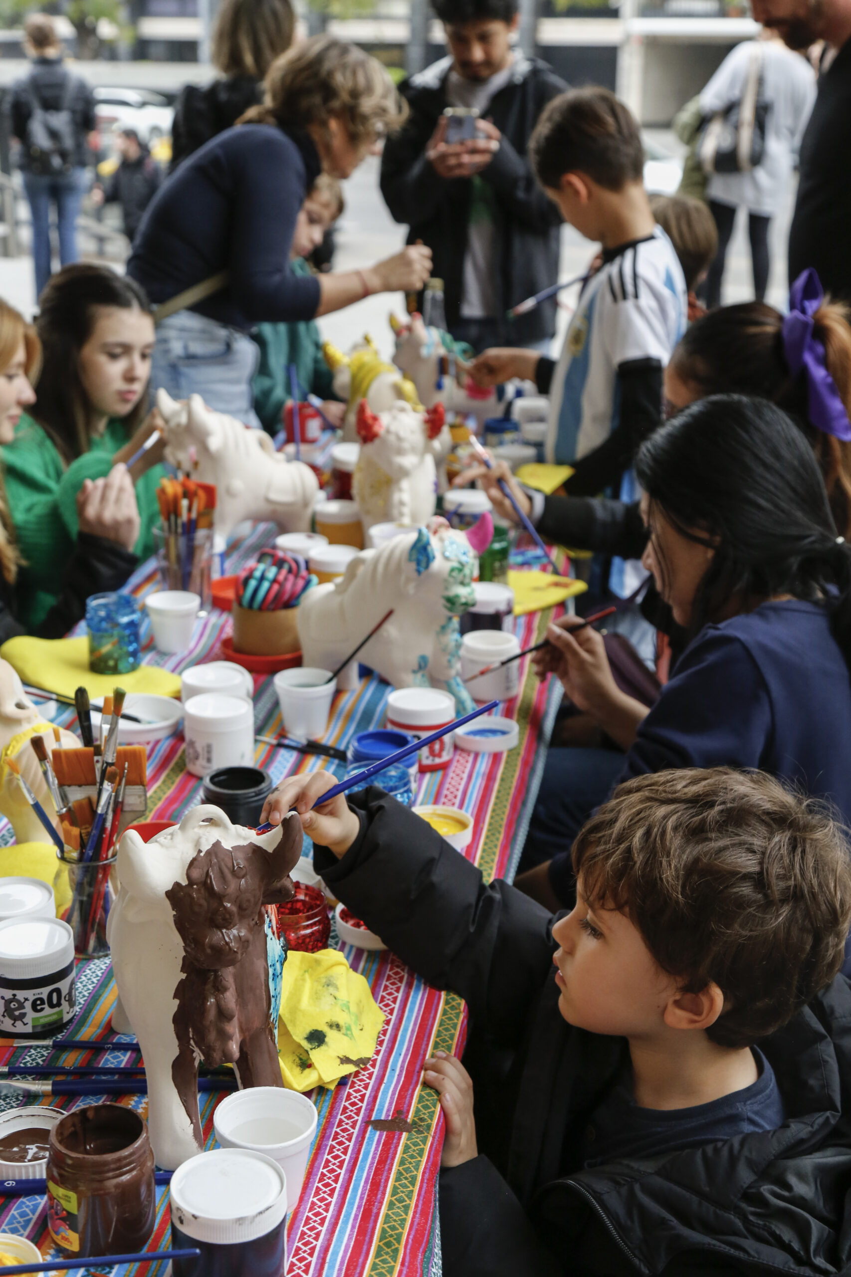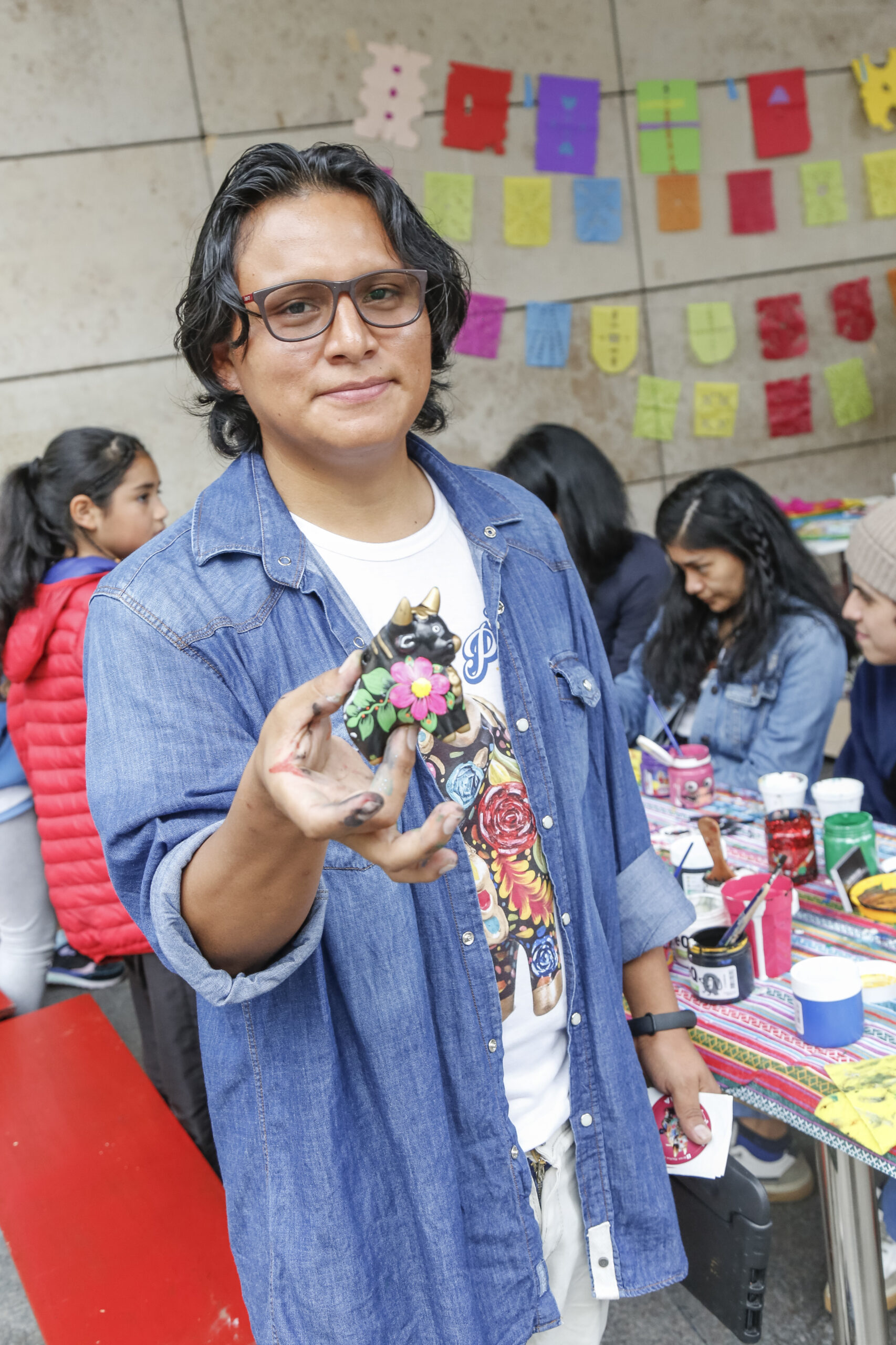 Durante toda la tarde hubo actividades para todas las edades. En la explanada y en el hall, grandes y chicos disfrutaron de seis estaciones en las que se podía crear y dibujar toritos de Pucará, hacerse trenzas inspiradas en Frida Kahlo, hacer collages con sellos inspirados en las obras del museo, fabricar banderines mexicanos y armar fanzines en la estación editorial.