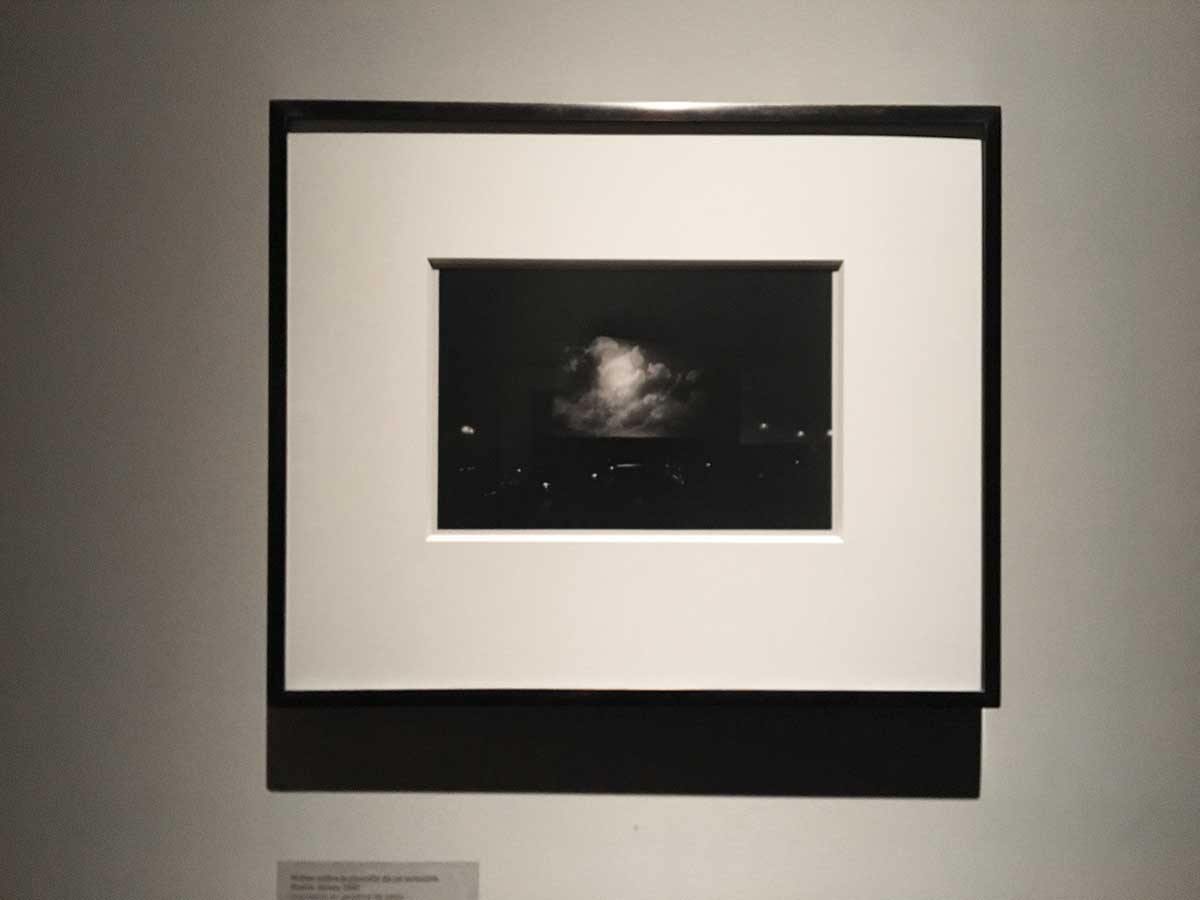 Clouds on screen at a drive-in movie, N.J. 1961 [Nubes en la pantalla de un autocine, Nueva Jersey 1961] previamente estaba fechada en 1960. Sin embargo, los rollos de película en los que está esta foto, así como otros adyacentes, datan de 1961. Además, el 18 de julio de 1961 aparece en la agenda de Arbus la siguiente nota: “La maldición del hombre lobo; La sombra del gato; autocine… Newark”. Ambos films de terror –La maldición del hombre lobo y La sombra del gato– fueron lanzados en 1961 y proyectados juntos en una doble función. La foto está tomada en el momento de La maldición del hombre lobo en el que las nubes se corren y se ve la luna llena, que provoca la transformación del hombre lobo del título.