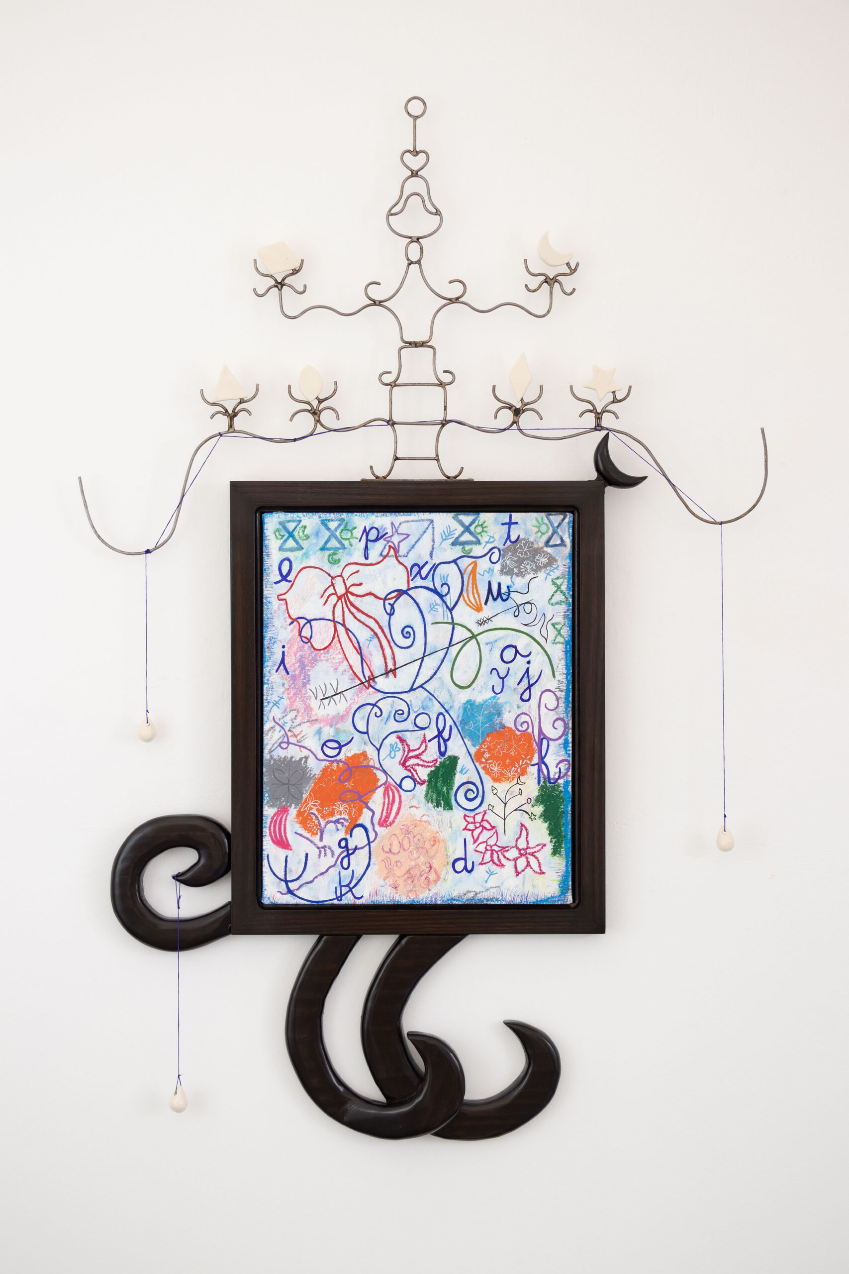 Si Xul Solar inaugura una vía inédita para la cultura visual de su tiempo, en lo sucesivo las conexiones entre tradiciones sagradas, saberes arcanos y artes visuales no dejaron de recrearse: Raquel Forner se nutrió de fuentes bíblicas –el Exodo, la Torre de Babel, La mujer de Lot– y de un sincrética cosmogonía espacial para dotar su obra de un profundo sentido trágico. Las grandes guerras del siglo XX son el escenario de muerte y desolación en los que habitan sus criaturas; la conquista del espacio durante la década del 60′ inspirará en ella obras que supieron ser asimiladas a la cualidad visionaria de William Blake; no sería caprichoso equipararla al camino del héroe espacial que compuso con genio Stanley Kubrick en 2001: Odisea del Espacio. La contemplación estelar condujo también a Noemí Gerstein a crear esculturas de hierro de carácter lacerante a la vez cósmico. En ella las referencias zodiacales –Escorpio, Tauronave– conviven con las astronómicas –La Osa Mayor, Las Pléyades–, bíblicas –Goliath–, mitológicas –Pequeño Dragón, Icaro–, para dar forma a una poética que evoca arquetipos atávicos. De modo semejante, la tradición cristiana, la alquimia, el chamanismo o las enseñanzas de George Gurdjieff, se arraigan en la obra de Victor Grippo, Germaine Derbecq, Alfredo Portillos, Elda Cerrato, Santiago García Saenz, Nora Correas, Liliana Maresca; comprendiendo en estos nombres una genealogía tan arbitraria como insuficiente. La exhibición Luz y Fuerza curada por Lara Marmor traza un recorrido generacional –en gran medida artistas nacidos entre las décadas del 70′ y 80’– para abordar este fructífero vínculo entre filosofías espirituales y creación. Los enfoques y percepciones son múltiples, caleidoscópicos: surgen las re-escrituras de las herencias familiares, los peregrinajes interiores, la ironía como respuesta al mandamiento del bienestar –pulgares para arriba, fármacos que sirven de yelmos–, los artefactos neo-paganos. Hay un yogui, es una escultura de Diego Bianchi realizada con cemento, plástico, madera, ropa deportiva, telgopor y poliuretano; se llama Vadaconasana y participó de su exposición individual Ejercicios espirituales en 2010, en el Centro Cultural Recoleta. Bianchi tomo en aquella oportunidad un concepto significativo para la filosofía griega que siglos después fue recuperado, resignificado por San Ignacio de Loyola. Los ejercicios espirituales del santo jesuita constituían un método, a través de la oración, la contemplación y ciertas prácticas corporales, para vivenciar la presencia de Dios. Es claro que la obra de Bianchi se encuentra eximida de todo canon religioso; sin embargo en muchos de sus trabajos hemos podido experimentar con intensidad el ingreso a un mundo –a falta de encontrar la palabra adecuada– consagrado. Para entrar en su exposición Imperialismo Minimalismo [2] había que trepar por una dificultosa rampa; ingresar en Under de sí [3] implicaba un dilema ético: pasar por encima de un puente humano o no… los performers que soportaban las tablas sobre sus pechos sintieron el peso de una tropilla de gente que lo hizo. No es esta la ocasión para rememorar las impresiones de lo que ocurría después de atravesar aquellas encrucijadas, sí para tener presente que consistía en experimentar –con sutil humillación, con algo de claridad sobre el propio lado oscuro– una iniciación.
