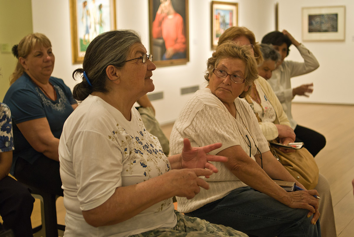 La propuesta consiste en un recorrido por las salas de la colección permanente o exposiciones temporarias, donde se busca estimular la memoria personal, subjetiva, de las personas mayores. Durante la visita se propone un diálogo entre los educadores y los participantes, que inicia a través de preguntas abiertas en torno a una selección de obras de arte. El contexto socio-histórico de las obras resulta cercano a la historia personal los participantes mayores y sirve de disparador para iniciar el intercambio, compartir historias de vida, relatos, puntos de vistas y apreciaciones de carácter personal.